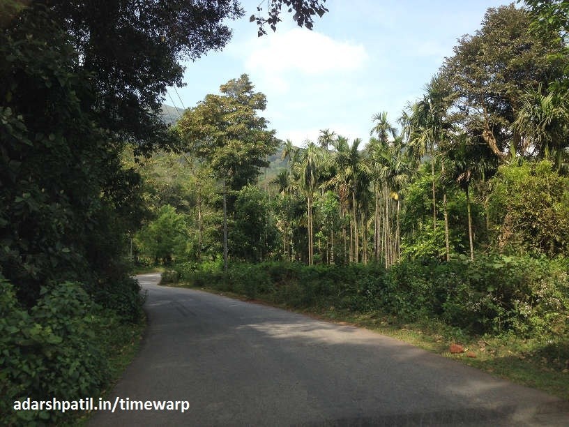 We broke off the highway here just after Sakleshpur towards Kalsa. This route is full of gentle and some places hard curves but the roads are smooth and can easily accomodate big vehicles. If you're a motoring enthusiast you'll surely enjoy this road.